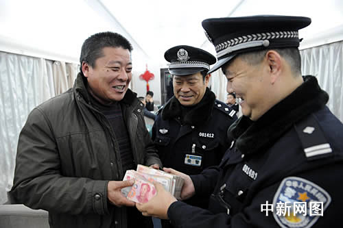 獲知十二萬元巨款找到的消息后,忐忑不安的孟先生終于一塊石頭落了地。當(dāng)晚,孟先生和同事返回徐州,并送上了一面錦旗。在車上,乘警將十二萬元現(xiàn)金交到了孟先生的手中。“真沒想到,錢還能找到,還是咱們警察負(fù)責(zé),為老百姓著想!”喜笑顏開的孟先生連聲贊嘆。(完)
