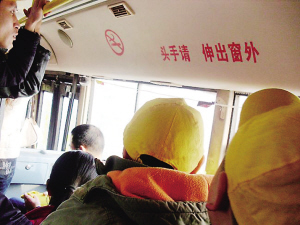 公交車上標語提示“頭手請伸出窗外”,細心的乘客一看才發現,原來標語中的“勿”字不見了,本來警示安全的標語,如今卻成了安全隱患。昨天,涪陵一網友發帖,講述涪陵一輛公交車上的雷人事。