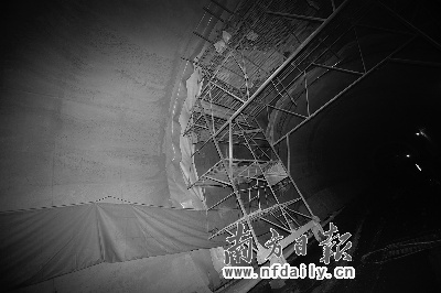 前夜記者獲悉隧道發生塌方事故后前往調查。附近居民及施工隊員聽聞,均對此事諱莫如深,緘口不言。本報采訪車也被工地相關人員跟蹤,司機遭到盤問。
