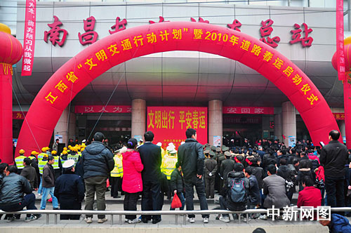 中新網(wǎng)南昌1月29日電(記者 段長征)1月29日,江西省“文明交通行動”及暨道路春運(yùn)啟動儀式在南昌長途汽車站舉行。這標(biāo)志著江西省“文明交通行動計劃”與2010年道路春運(yùn)正式拉開帷幕。江西省副省長洪禮和及省文明辦、省公安廳、省交通廳、省交警總隊(duì)等部門領(lǐng)導(dǎo)出席了現(xiàn)場啟動儀式。