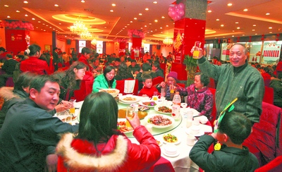 鄭龍(自由職業者):我家以前都是在家里吃團年飯,現在變成了到外面一邊吃一邊談。現在城里人的消費能力越來越強了,不管你是到哪里吃年夜飯,酒家也好,賓館也好,農家樂也好,自己家里也好,關鍵是要吃得開心。