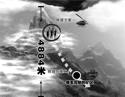 據(jù)了解,還有兩個(gè)方式走出原始秘境。一是乘坐直升機(jī),但每天如約而至的大暴雨根本沒有適合直升機(jī)飛行的條件。二是穿過當(dāng)?shù)嘏衍娍刂频牡V區(qū)。但這需要有過硬背景的探險(xiǎn)公司與政府武裝聯(lián)合,喬裝成礦工用軍車乘夜間護(hù)送。途中還需要很大一筆費(fèi)用來打點(diǎn)當(dāng)?shù)氐奈溲b分子,這樣才能順利通行。這些條件缺一不可,否則,很有可能被當(dāng)?shù)胤钦溲b扣押。7名隊(duì)員一直認(rèn)為這一路徑十分冒險(xiǎn)。但如果不能原路返回,穿越礦區(qū)就成為登山隊(duì)員走出原始秘境的一條捷徑。