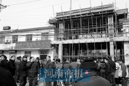昨日上午9時(shí)許,鄭州市圃田鄉(xiāng)政府大門前,近百名群眾圍在鄉(xiāng)政府大門前。眾人低語著,眼睛瞄向鄉(xiāng)政府院內(nèi)。