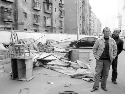“工人把帳篷搭到這兒后,我們門前的停車場幾乎都被占了,對生意影響很大!”3月10日下午4時許,記者來到農民巷西段時,“肆坊肘子”的老板正為這事犯愁。隨后,相鄰的“新港麗”中西餐廳和溫州港的老板也向記者訴說了他們的煩惱。他們告訴記者,3月9日晚上,一小部分工人開始搭建帳篷住了下來,晚上9點多,他們就看見工人在路邊倒臟水、隨地大小便,顧客停在路邊的車也被搭建材料劃傷。第二天,地上就堆了許多生活垃圾,到了中午工人就坐到酒店門前的臺階上,對生意影響太大了,“餐飲生意講究的就是衛生,這顯然不太好!”