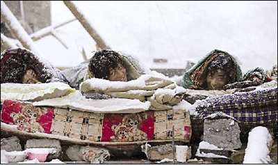 昨天,玉樹抗震救災(zāi)進入第九天。地震災(zāi)區(qū)凌晨降下地震以來最大降雪,并伴有四到五級陣風(fēng)。預(yù)報23日震中結(jié)古鎮(zhèn)還有一場至少同等規(guī)模的小到中雪,將對災(zāi)區(qū)群眾生活和抗震救災(zāi)工作帶來新考驗。