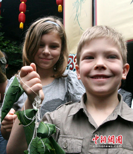 來自澳大利亞的尼克斯一家也成為現場的焦點。三個金發碧眼的小孩熟練地拿起粽葉包起了粽子。在不到半小時的時間內,僅有5歲的尼威廉就包了5個有模有樣的粽子出來,引得現場觀眾連聲叫好。據尼克斯夫人介紹,他們家三個小孩平時對中國文化都很感興趣,以前就學過包粽子。(完)