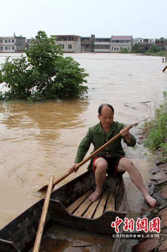 中新網撫州6月22日電(張見悅 艾永全 何柳斌)江西省第二大河撫河決堤之后,當地居民與各處趕到的抗洪大軍一道,展開生死救援,在重災區羅針鎮梅家渡村,一位中年男子用自己家的小舢板來回數十趟,將100多鄉親從澤國中送到了公路高地。