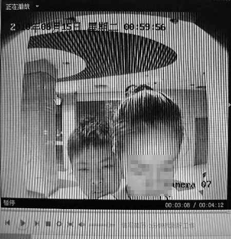 就在零點59分的時候,ATM機經過了輸入密碼等一系列操作,吐出了現金,還有電子語音提示:“請提取現金”。突然,屏幕上出現了一張臉,跟小方姑娘挨得特近,幾乎就湊在她脖子后面了;隨即小葉姑娘渾身一顫,兩眼翻白,腰部往前一挺,整個人往地下倒去。原來就是這個面目猙獰、比小葉姑娘矮上半個頭的劫匪把刀頂在了她腰上。