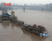 (采訪重慶市海事局朝天門海事處江北嘴執法大隊副隊長——孫谷:根據這種情況,我們也及時的對港內所有兩江游船進行了控制。以及我們港內的客渡船,現在也停航。及時排絞躉船躉船,確保躉船自身的安全。)