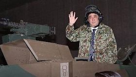 安倍穿軍裝登坦克 高呼“天皇萬歲”