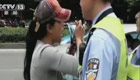 實拍無牌摩托被查 乘車女子猛咬交警