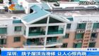 實拍孩子屋頂當滑梯嬉戲