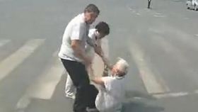 中年男子馬路上毆打拖拽七旬老太