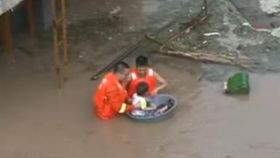 山洪圍困民房 消防用臉盆急救小孩