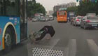 實拍小伙子騎"死飛"闖紅燈被公交車撞飛