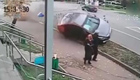 失控轎車與行人擦肩而過