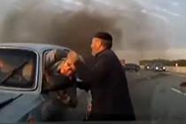 汽車被追尾燃起“火球” 過路男子踹玻璃救人