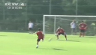 美女主持人直播球賽 被足球砸中腦袋