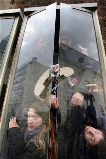 2008年1月15日,“Trop c'est trop”(“多太多”)組織的人士在巴黎一所監獄前示威,要求改善監獄人滿為患的狀況。他們擠在一個電話亭中,影射監獄中的擁擠狀況。他們要求政府依法尊重囚犯被單獨監禁的意愿。