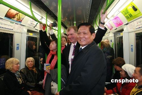 當?shù)貢r間28日上午,中共中央政治局委員、北京市委書記、北京奧組委主席劉淇在倫敦地鐵公司參觀考察。中新社發(fā) 李鵬 攝