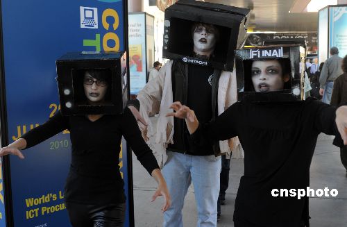 2009年國(guó)際消費(fèi)類電子產(chǎn)品展覽會(huì)(CES)1月8日至11日在著名賭城美國(guó)拉斯維加斯舉行。由于受到金融海嘯的沖擊,今屆電子產(chǎn)品盛會(huì)雖然規(guī)模縮水、熱度降溫,但依舊新品紛呈、亮點(diǎn)不斷。今年電子展的主題為“數(shù)字娛樂與內(nèi)容”,一批最新電子產(chǎn)品在本次展覽會(huì)上亮相。連綿數(shù)十米的微軟展臺(tái)以炫目的科技產(chǎn)品展示“我就是PC”的新理念,向與會(huì)者推介個(gè)人電腦、手機(jī)與電視走向融合的新趨勢(shì)。LG公司展示了一款具備通話、時(shí)鐘、音樂播放功能的腕表型手機(jī);索尼公司推出了二十一英寸、厚度不足十毫米的OLED電視樣機(jī);三星公司厚度僅有七毫米的全球最薄液晶電視吸引眾多眼球;多個(gè)廠家推出的輕巧上網(wǎng)筆記本電腦成為本屆展會(huì)的一道風(fēng)景線。中新社發(fā) 甘泉 攝