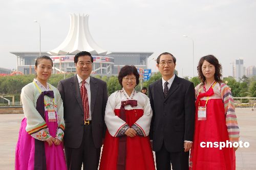 | 十一月二十三日,全國少數民族自治區城市市長聯席會第二十次會議在廣西壯族自治區首府南寧召開,中共廣西壯族自治區委常委、南寧市委書記馬飚(右二)、南寧市長林國強(右四)和身著朝鮮族衣服的延吉市代表合影。來自聯席會的八個成員城市的六十多名代表圍繞“加強民族團結,構建和諧社會”主題,探討發展思路,完善協作機制,進一步加強合作交流。會議確定,全國少數民族城市市長聯席會第二十一次會議二○○七年在吉林延吉市舉辦。中新社發 劉萬強 攝