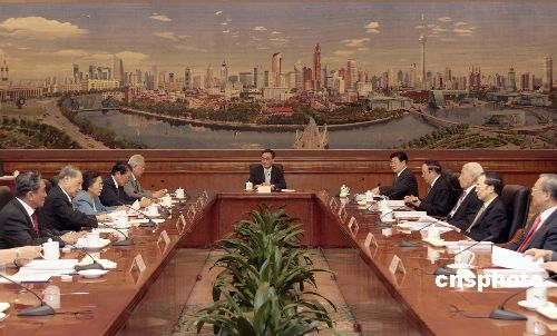 | 六月十八日,十屆全國人大常委會第六十一次委員長會議在北京人民大會堂舉行,全國人大常委會委員長吳邦國主持會議。會議決定十屆全國人大常委會第二十八次會議于六月二十四日至二十九日舉行,根據委員長會議建議的議程,此次常委會會議將繼續審議勞動合同法草案、反壟斷法草案、突發事件應對法草案、就業促進法草案,首次審議民事訴訟法修正草案、節約能源法修訂草案、律師法修訂草案。中新社發 盛佳鵬 攝