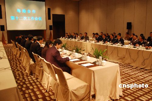 一月二十一日下午,粵港合作第十二次工作會議在廣州舉行,香港特區政府政務司司長唐英年與廣東省副省長萬慶良出席會議并在會后與記者見面。中新社發 柯小軍 攝