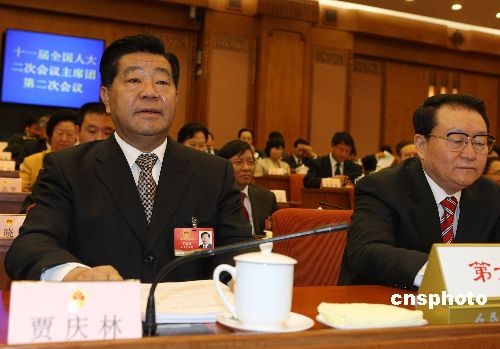 3月9日上午,十一屆全國人大二次會議在北京人民大會堂舉行第二次主席團會議,主席團成員賈慶林、李長春出席。中新社發 任晨鳴 攝