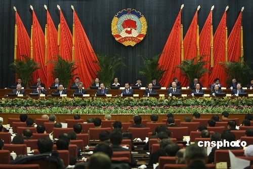 3月11日,政協第十一屆全國委員會常務委員會第五次會議在北京舉行,全國政協主席賈慶林出席并主持會議。會議通過政協第十一屆全國委員會第二次會議關于常務委員會工作報告的決議(草案),審議通過政協第十一屆全國委員會提案委員會關于政協十一屆二次會議提案審查情況的報告(草案),通過政協第十一屆全國委員會第二次會議政治決議(草案)。中新社發 盛佳鵬 攝
