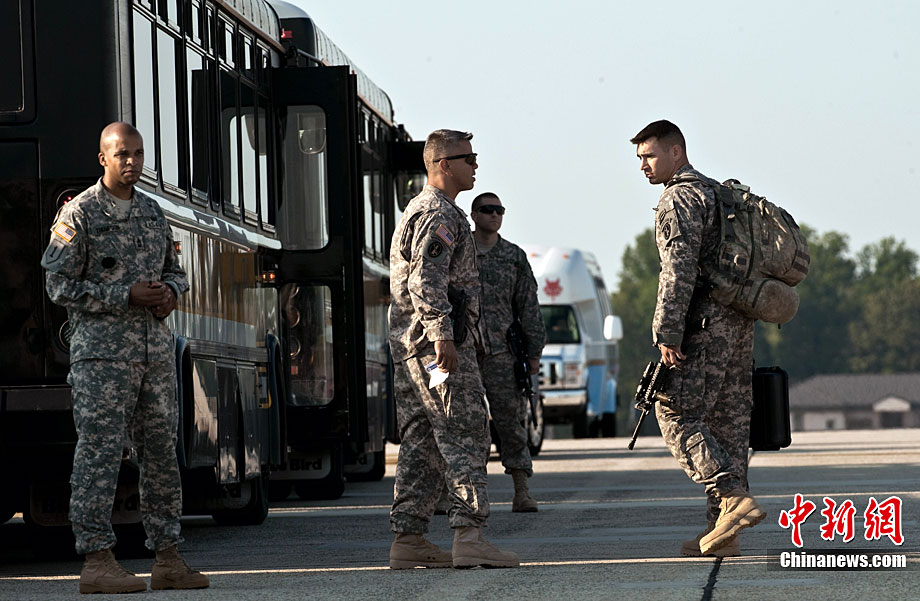 當(dāng)?shù)貢r(shí)間8月28日,部分駐伊美軍戰(zhàn)斗部隊(duì)士兵抵達(dá)美國首都華盛頓附近的安德魯斯空軍基地,并與親屬團(tuán)聚。