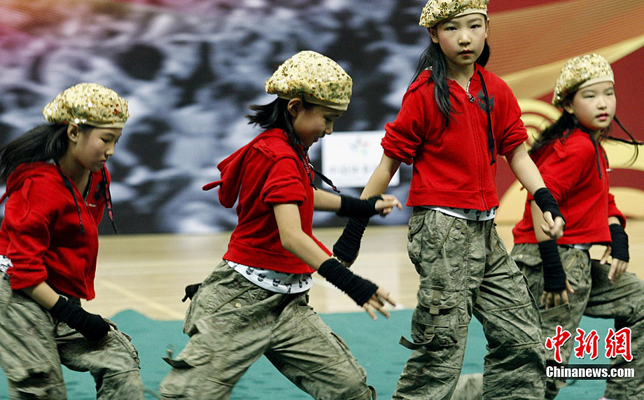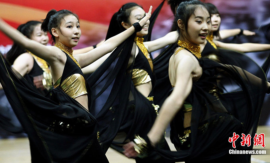 9月18日,2010年“浩沙杯”全國(guó)萬(wàn)人健美操大賽舉行北京分賽區(qū)大賽,同時(shí)上海、廈門(mén)、廣州、成都、長(zhǎng)沙以及南昌、濟(jì)南等分賽區(qū)亦相繼舉行。圖為北京體育學(xué)院參賽隊(duì)展示健美操。中新社記者 錢(qián)興強(qiáng) 攝