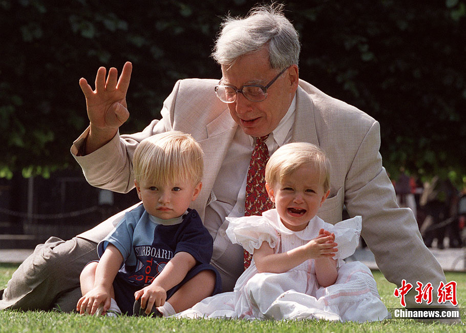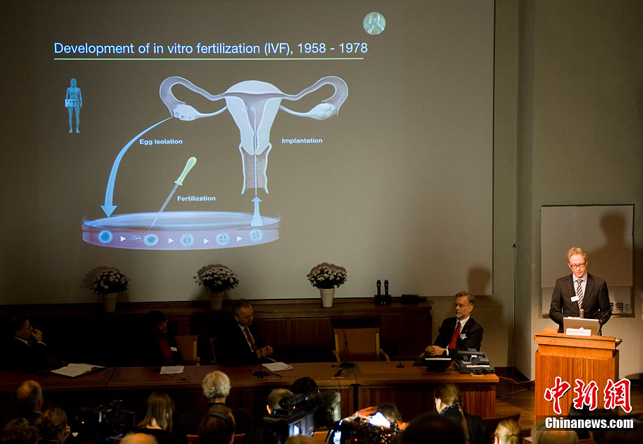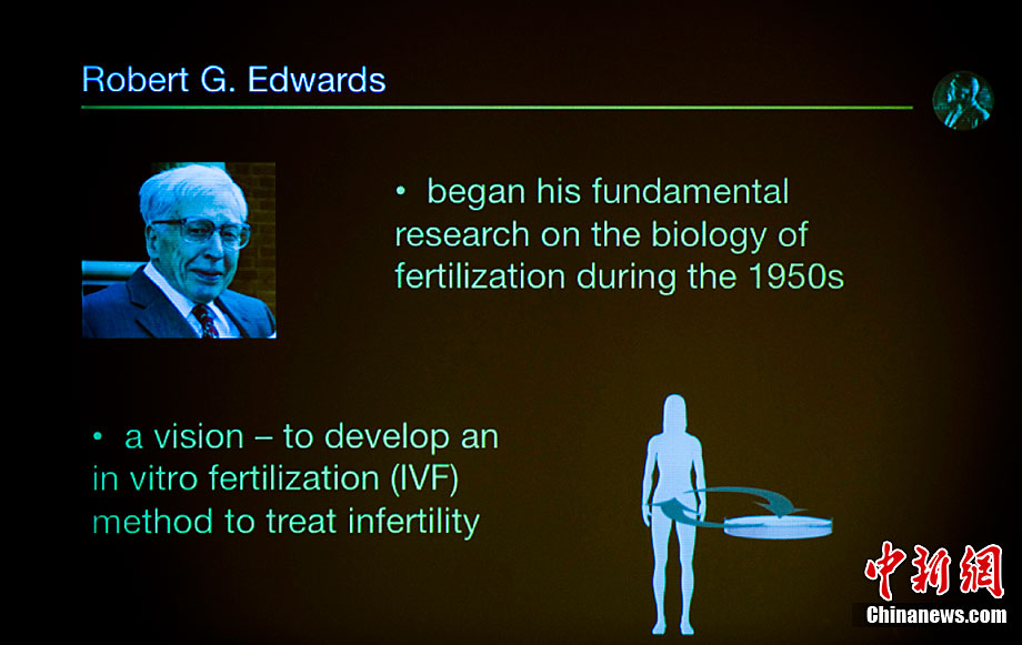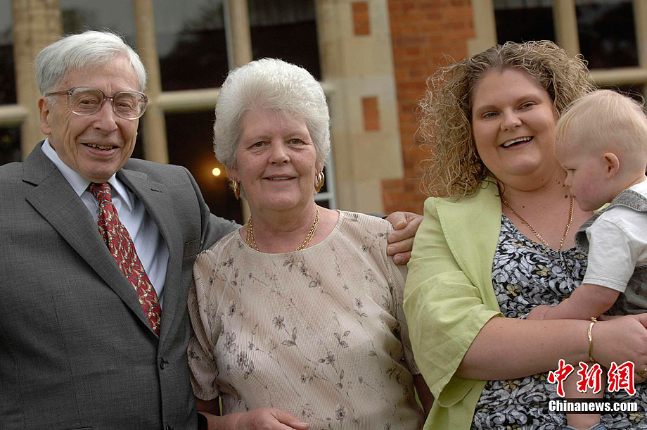 被譽為“試管嬰兒之父”的英國科學家羅伯特·愛德華茲10月4日獲得諾貝爾生理學或醫學獎,他因身體欠佳未對獲獎消息發表感言。圖為2008年7月12日,愛德華茲(左)與世界第一個試管嬰兒路易斯(右)和她的兒子、母親合影。