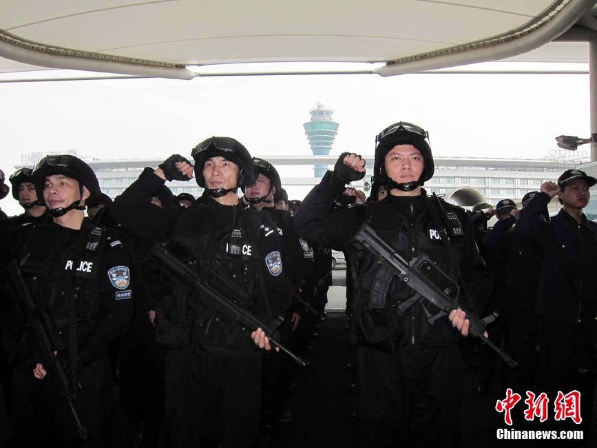 10月12日上午,廣州白云國際機場公安局舉行亞運安保誓師大會,數百名警員出席大會,在此間保證圓滿完成亞運安保任務。中新社記者 柯小軍 攝