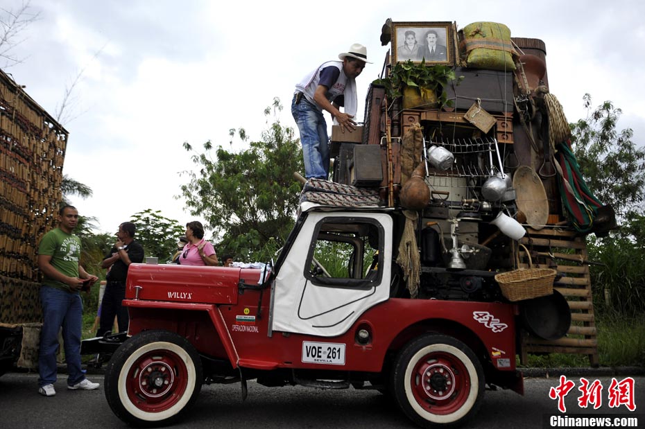 當地時間2010年10月16日,哥倫比亞波哥大西南部舉行老爺車大游行。這種老爺車在哥倫比亞被稱作是yipaos,本來是美國制造,二戰后傳到了哥倫比亞,到了哥倫比亞后,被這里的農民用來運輸各種農產品等。