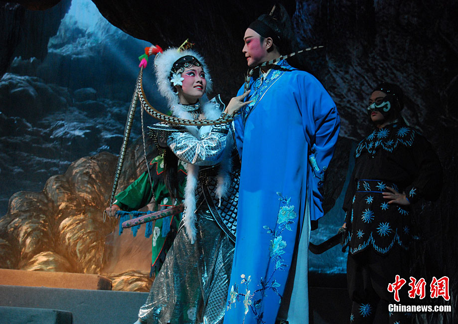 10月22日晚,中國首屆臨水夫人陳靖姑文化學術研討會獻演劇目,大型神話閩劇《臨水夫人陳靖姑》在陳靖姑祖廟所在地——福建古田精彩上演。該劇由古田縣閩劇團演出,共有《陳靖姑出世》、《蛇鬼禍害》、《延婚離家》、《結義學法》、《婚禮劍影》、《蛇鬼陰謀》、《哭別嬰兒》、《閩江祈雨》、《得道臨水》、《天上人間》10個場次,講述了陳靖姑降妖除魔、救助婦孺的感人事跡。兩岸媽祖宮廟代表人和當地信眾,共同觀看了此次演出。李松 攝