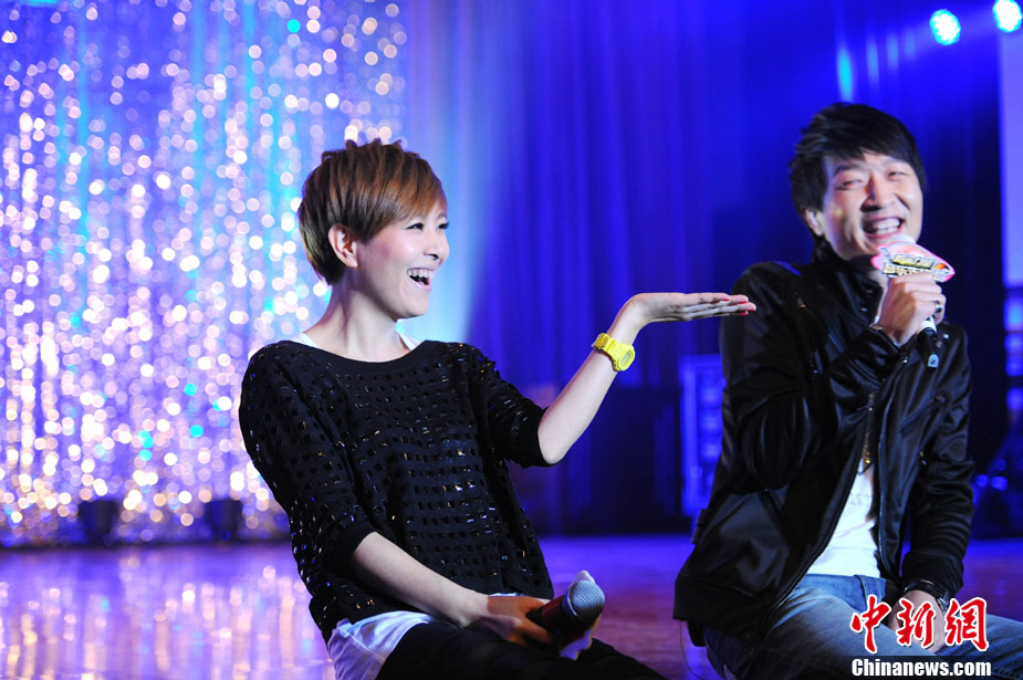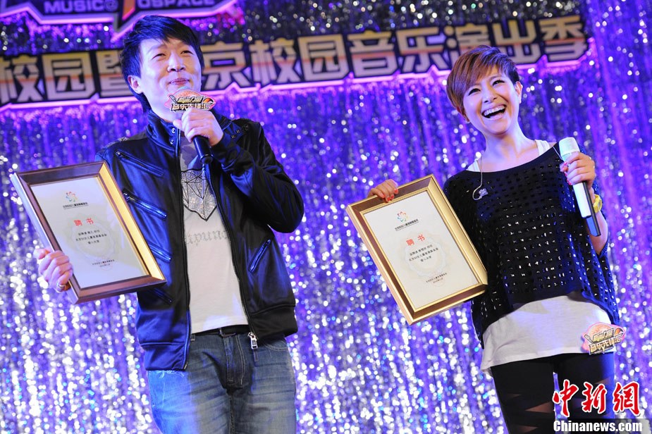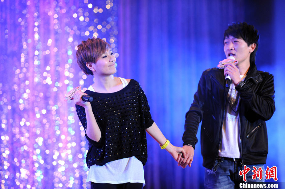 11月29日晚,2010公益進(jìn)校園暨北京校園音樂演出季活動(dòng)之李慧珍&樊凡主題歌友會(huì)在北京化工大學(xué)舉行,兩位歌手為歌迷們獻(xiàn)上了一首首經(jīng)典的曲目。因演唱熱播電視劇《蝸居》主題曲爆紅的樊凡還親自譜曲了情歌《只需要一首歌》,并與李慧珍牽手甜蜜合唱。現(xiàn)場,積極投身愛心公益事業(yè)的樊凡和李慧珍還為貧困學(xué)生頒發(fā)了“媽媽的年夜飯”善款,并雙雙被北京婦女兒童基金會(huì)聘為“愛心大使”。圖為李慧珍、樊凡牽手獻(xiàn)唱。中新社記者 李學(xué)仕 攝