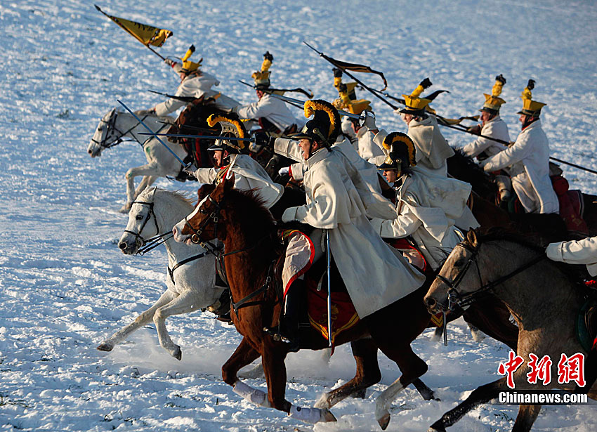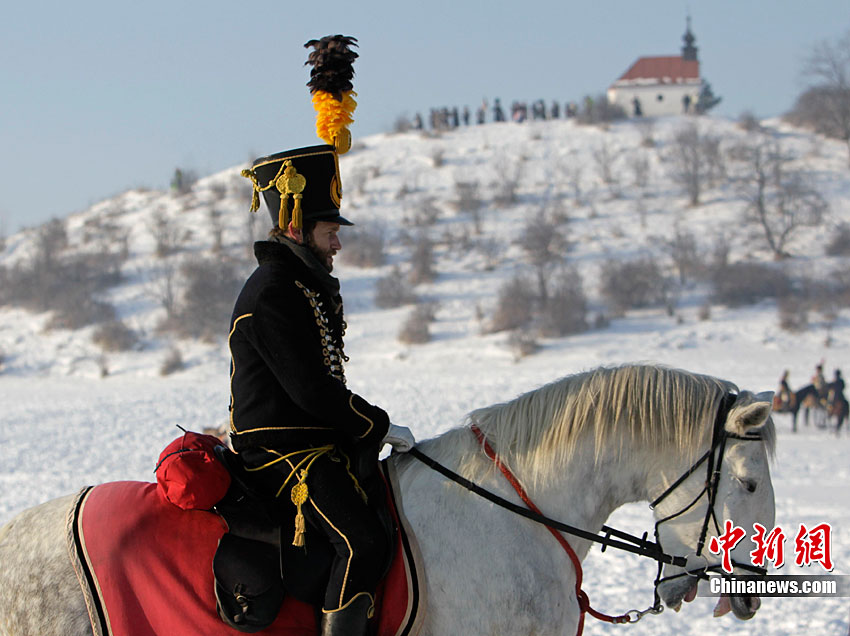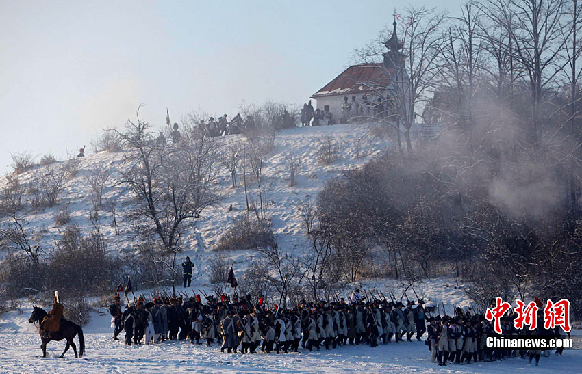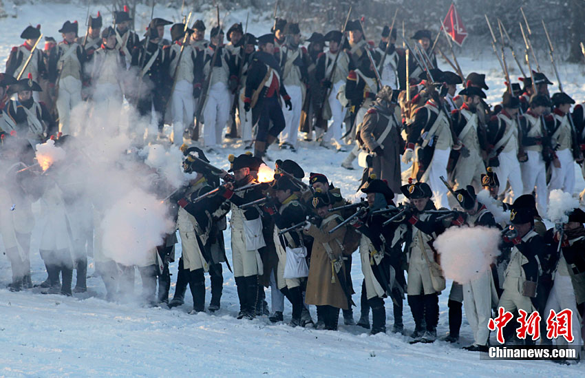 當地時間12月4日,捷克斯拉夫卡夫市,為紀念“三皇之戰'205周年,歷史軍事發燒友俱樂部的成員還原了當時的戰爭場景。位于歐洲大陸中部的奧斯特利茨1805年12月2日爆發一場決定性戰役,對陣雙方分別是代表歐洲專制傳統的奧地利神圣羅馬帝國和沙皇俄國聯軍,以及乘大革命風潮而起的法蘭西第一帝國軍隊。這場戰役又稱“三皇之戰”,因為交戰雙方指揮官分別是神圣羅馬帝國皇帝弗朗茲二世、沙皇亞歷山大一世和法蘭西第一帝國皇帝拿破侖一世。