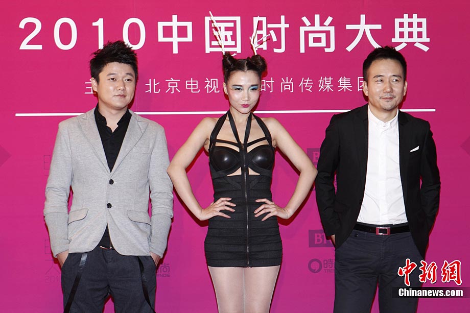 12月22日晚,由北京電視臺和時尚傳媒集團聯合主辦的2010中國時尚大典在北京精彩上演。張藝謀、黃曉明、何潤東、立威廉、翁虹、秦嵐、張靚穎、愛戴、阿朵等眾星云集讓現場星光熠熠。2010時尚大典以“時尚改變生活”為主題,精心設計并頒布了覆蓋時尚生活和時尚工業全局的18個大獎。藝術家葉錦添領軍16位中國新銳時裝設計師打造明星與名師的“跨界”時尚秀場。大典精彩鉅獻了一場集震撼視覺表達和時尚魅力呈現的饕餮盛宴。圖為阿朵和“筷子兄弟”組合,阿朵的黑色緊身衣和鹿角發型十分搶鏡。中新社記者 李學仕 攝