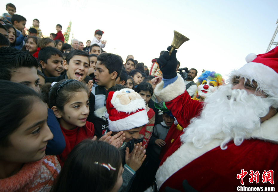 當地時間12月24日,伊拉克庫爾德人聚集地圣誕老人為孩子們送去歡樂。
