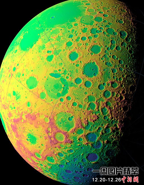 近日,美國航天局對外公布了月球勘測軌道飛行器攜帶的月球軌道飛行器激光測高儀(LOLA)對該地點進行的高度測量。科學家稱,月球勘測軌道飛行器使研究者能制造出最精確且最完整的月球地形圖。紅色代表月球最高點,藍色代表最低點。
