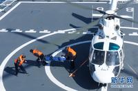 搜救直升機營救“落水人員”。孫利 攝 圖片來源:新華網