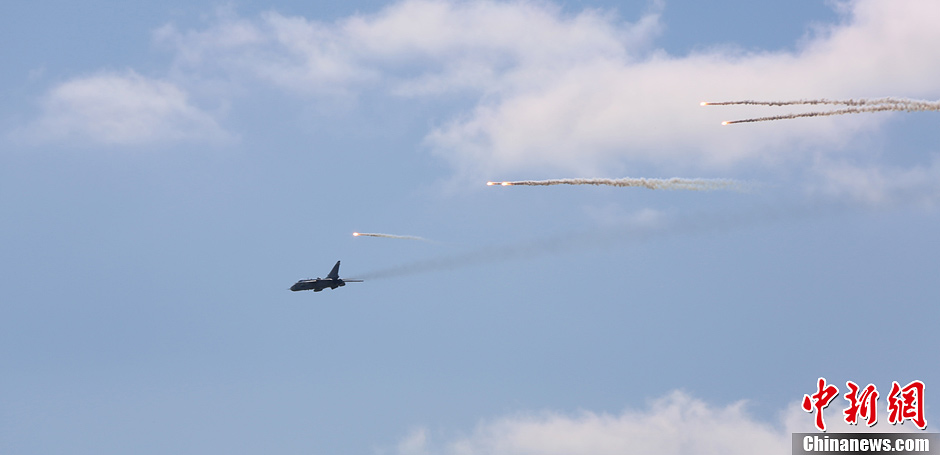8月12日,“和平使命-2013”聯(lián)合反恐軍演中俄兩軍參演部隊(duì)在切巴爾庫(kù)爾合同訓(xùn)練場(chǎng)舉行全員全要素實(shí)兵協(xié)同訓(xùn)練。雙方共出動(dòng)官兵近900人,坦克、步戰(zhàn)車(chē)、直升機(jī)等武器裝備約130臺(tái),雙方導(dǎo)演部總導(dǎo)演——俄中部軍區(qū)司令員波格諾夫斯基和沈陽(yáng)軍區(qū)副司令員石香元,共同到演習(xí)地觀摩并指導(dǎo)兩軍訓(xùn)練。圖為空軍戰(zhàn)斗群一架戰(zhàn)斗機(jī)在訓(xùn)練中。中新社發(fā) 李祥輝 攝