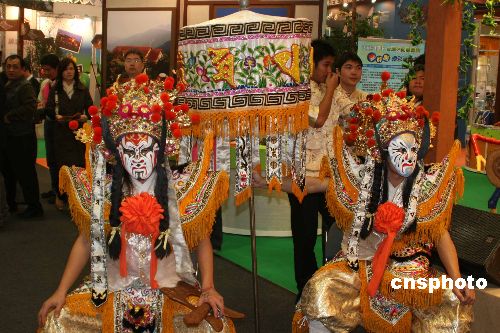 十二月十七日傍晚,“臺北國際旅展”閉幕,四天共吸引十九萬三千九百多人次入場,創下二十一年來新高。圖為一個攤位請來“八家將”助陣。中新社發 董會峰 攝