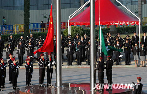 12月20日,澳門特區(qū)政府在金蓮花廣場(chǎng)舉行隆重的升旗儀式,慶祝澳門回歸祖國(guó)9周年。澳門特區(qū)行政長(zhǎng)官何厚鏵、中央政府駐澳聯(lián)絡(luò)辦主任白志健、外交部駐澳特派員公署特派員盧樹民,以及特區(qū)政府各部門官員、社會(huì)各界代表逾500人出席升旗儀式。