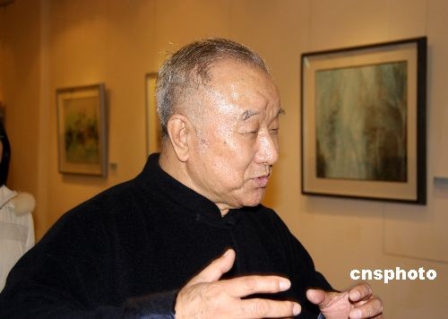 3月14日,宇宙心印——劉國松繪畫一甲子開幕式典禮在臺北“國父紀念館”舉行。圖為臺灣著名國畫家劉國松在開幕式上接受媒體記者采訪。中新社發 陳立宇 攝