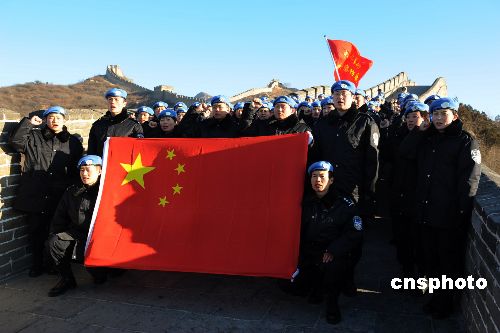 2009年1月1日,中國第八支赴海地維和警察防暴隊在北京八達嶺長城和天安門廣場舉行維和宣誓暨簽名活動,激勵全體隊員牢記維和職責,苦練精兵,為維護世界和平做出積極貢獻。該支維和警察防暴隊以山東公安邊防總隊為主組建,目前正在河北廊坊中國維和警察培訓中心接受綜合培訓,將于今年4月份出征海地執(zhí)行維和任務。中新社發(fā) 由永懷 攝