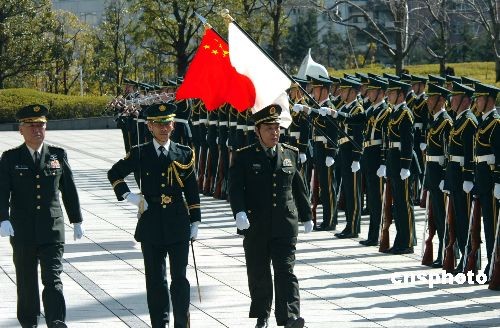 2月19日,正在日本進行訪問的中國人民解放軍副總參謀長葛振峰上將應邀訪問了日防衛省,并在陸上自衛隊幕僚長折木良一將軍的陪同下檢閱了陸上自衛隊儀仗隊。這也是中國副總參謀長第一次對日本進行訪問。葛振峰于當月16日抵達日本,將于20日結束全部行程回國。中新社發 朱沿華 攝