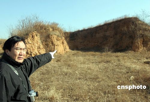 | 11月29日,秦皇島市的長城專家與文物工作人員正在對一處古建筑遺址進行測量。近日,秦皇島經濟技術開發區郭莊村的一位村民發現這處古建筑遺址類似于山海關沿海城防系統的古烽火臺,并報告了文物部門。當日,秦皇島市長城學會的長城專家與山海關區文物局的工作人員來到現場進行實地考察。據了解,此古建筑遺址原認定為是清光緒5年的崔臺子營盤,有記載在清代曾駐軍150人左右。現場考察的專家說,從遺址的建筑方式上可以確定為明代的軍事建筑,有可能是長城專家們已經尋找了多年、明萬歷12年建筑的山海關沿海城防系統的重要設施之一白輔3號烽火臺,具有極高的進一步考證價值。中新社發 劉學忠 攝
