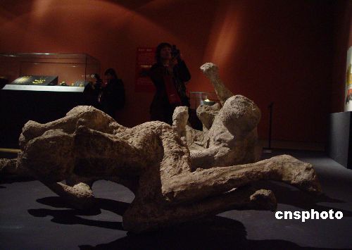 | 2007年2月15日至5月7日,由意大利坎帕尼亞大區旅游和文化遺產局、意大利龐貝考古管理局、意大利那不勒斯和卡塞塔考古管理局、中華世紀壇世界藝術館和浙江省文化廳共同主辦的《龐貝末日——源自火山噴發的故事》展(簡稱“龐貝”展),將在中華世紀壇世界藝術館拉開帷幕,“龐貝”展將力求再現龐貝在公元79年8月24日不到1天的時間內遭受火山爆發、4次熔巖流和3次灰塵暴襲擊后化為廢墟的場景。中新社發 杜洋 攝
